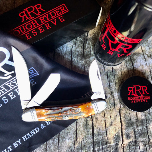 Rough Ryder Reserve RRR026CB Roundup — Brown Stag Bone Handle | Clip & Spey Blades