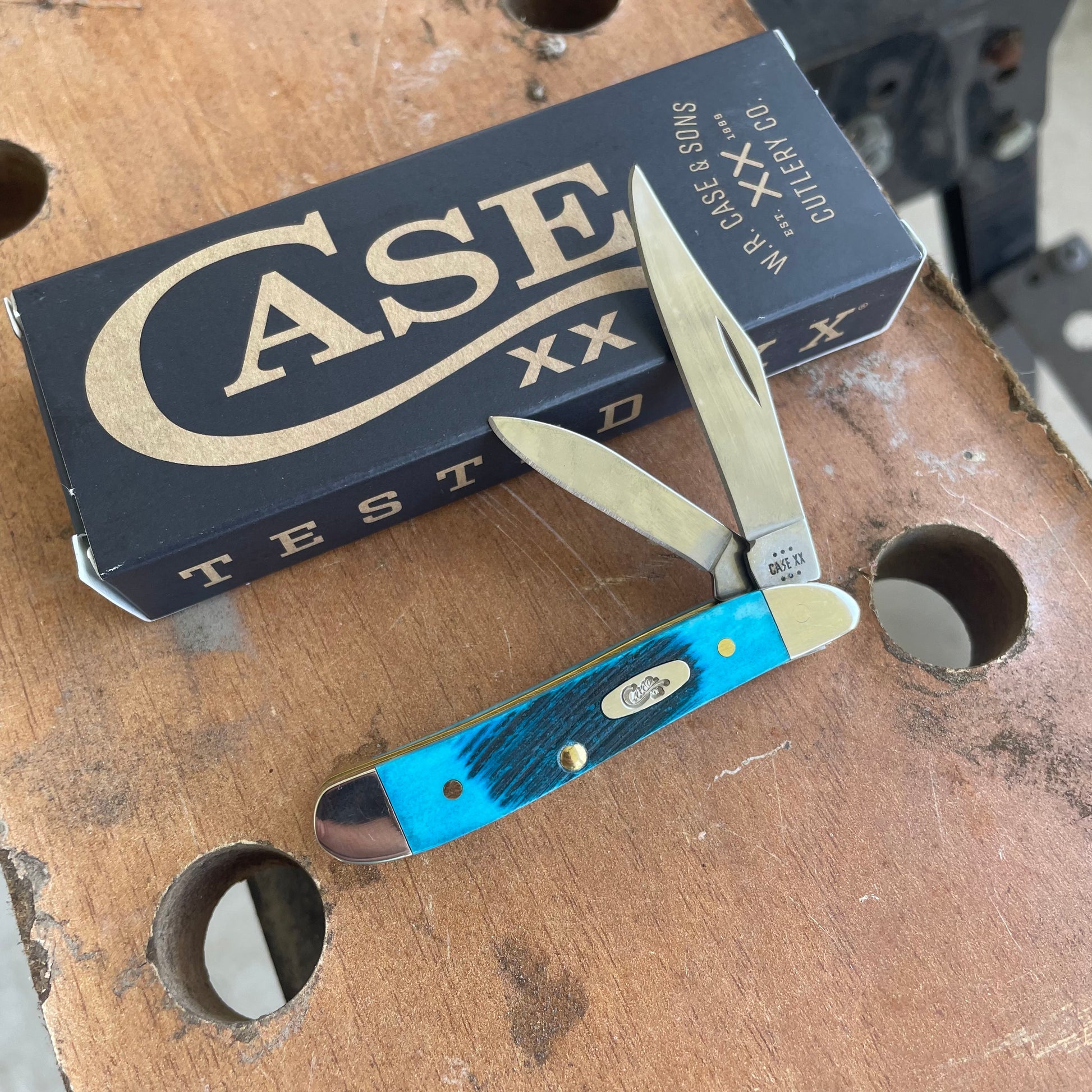 Case Caribbean Blue Bone Sawcut Jig Peanut