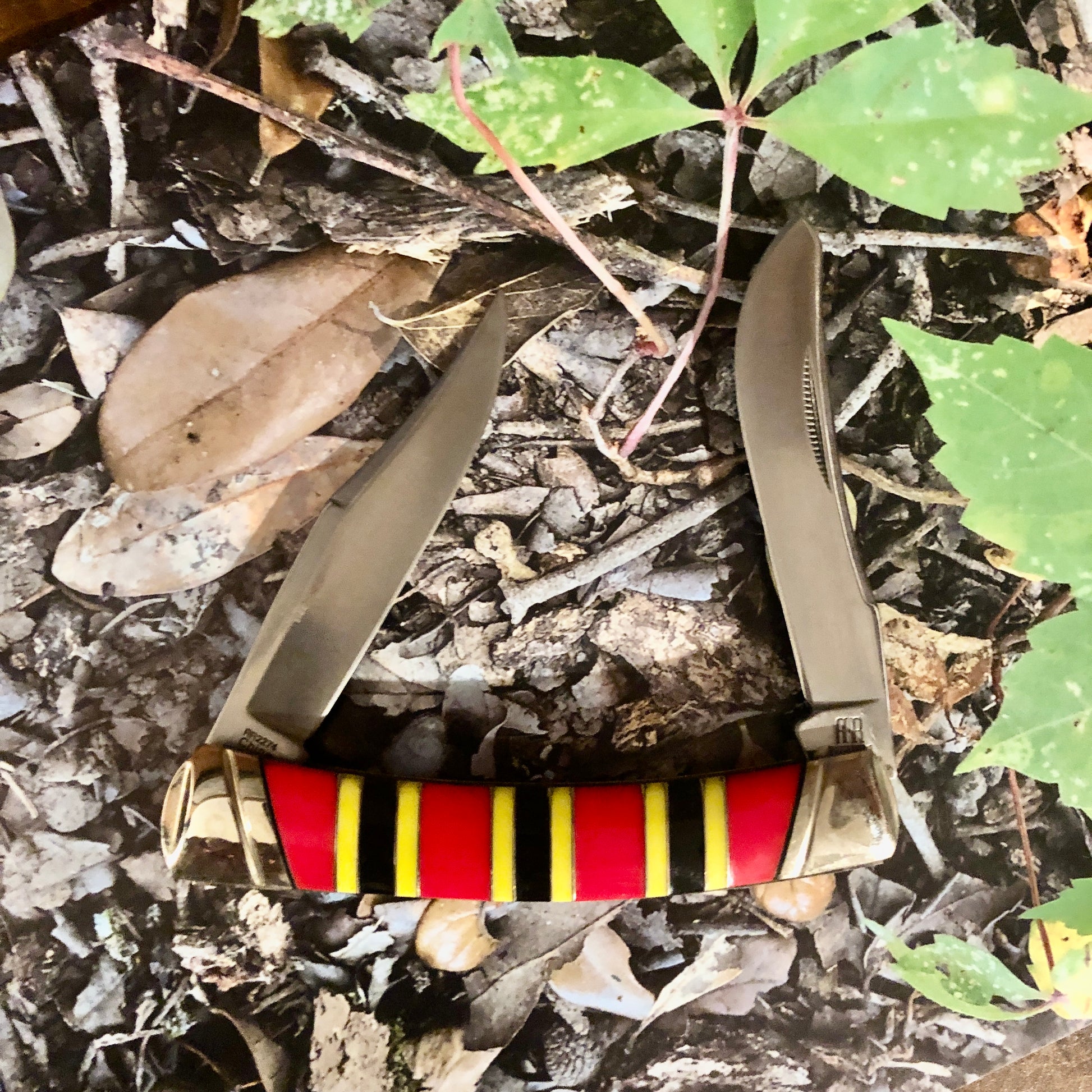 The Rough Rider Large Moose RR2274 from the Coral Snake Series is a vibrant tribute to traditional pocketknife craftsmanship with a wild twist. Featuring dual blades and a bold red, yellow, and black handle inspired by the coral snake’s iconic pattern, this knife is as much a collector’s piece as it is a reliable tool.